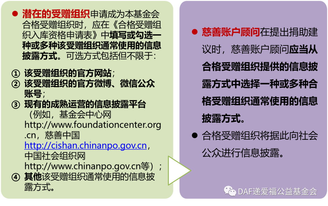借鉴海外DAF基金会确认受赠组织的原则,递爱福基金会按流程组建合格受赠组织库。