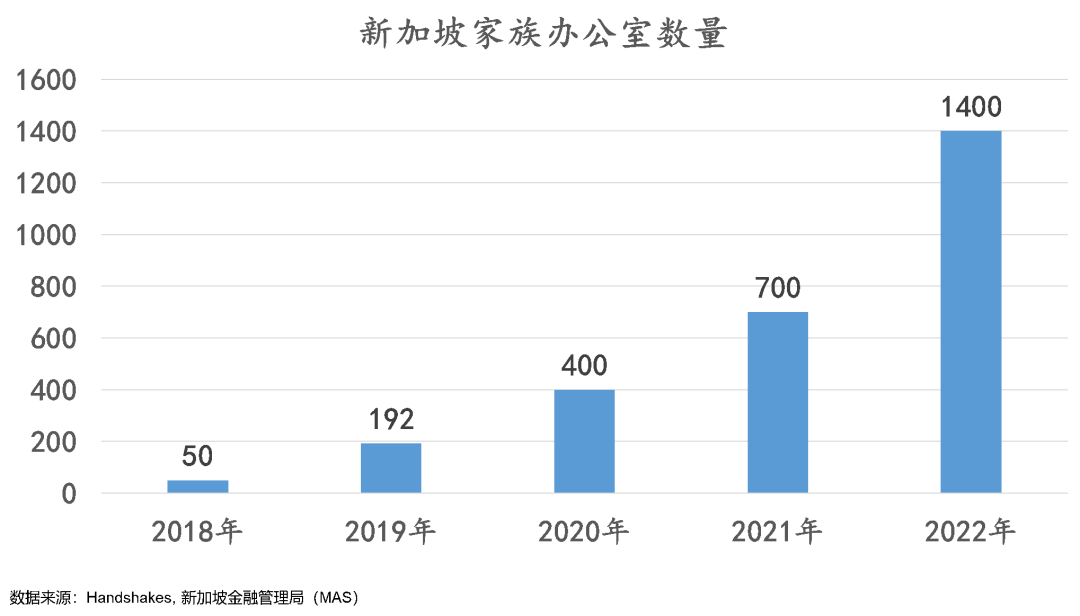 在2018年新加坡家办优惠政策出来前,新加坡只有50家单一家办,但到2022年年底,家办数量猛增到1400家,仅四年时间就增加了27倍。