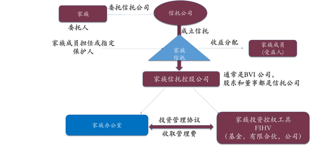 注意,新加坡和香港对家族信托是没有硬性规定的,也就是说,没有家族信托也可以成立家办,就是以私人来控制一个公司的方式进行。但是,我们从境外的实操经验来看,如果有家族信托的话,对家族财富的风险隔离、资产保全以及传承等,都起到了积极的作用。这样,就可以把资产保值增值的功能放在家办,而把资产的保护和传承的功能放在信托。